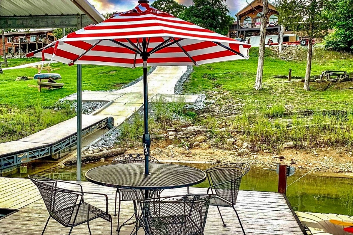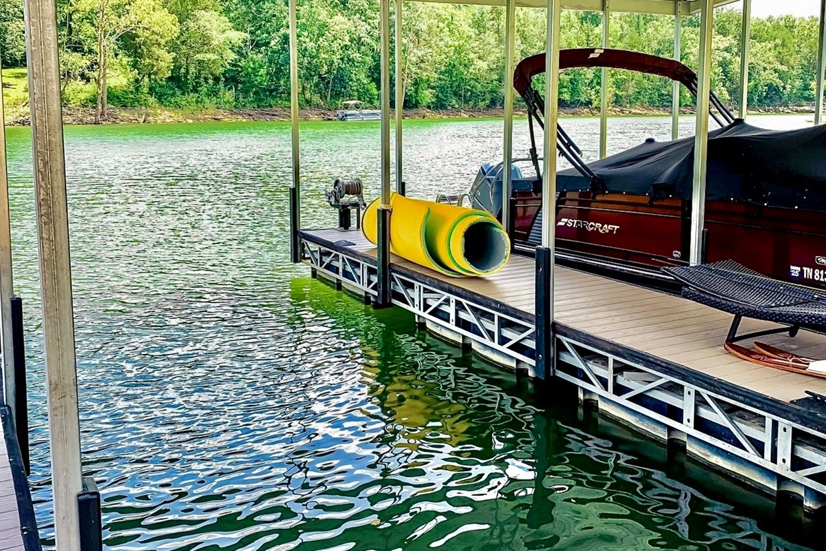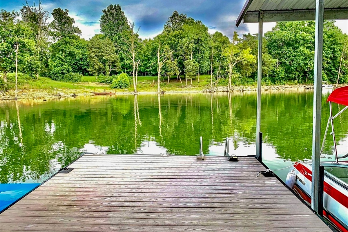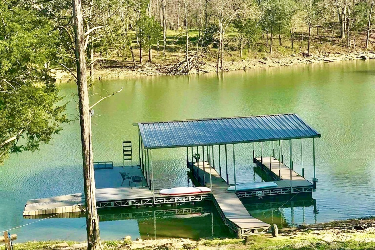 • Private dock with 2 covered slips, and 2 uncovered, (plus overflow docking if needed) a swim platform, and 2 jet ski ports