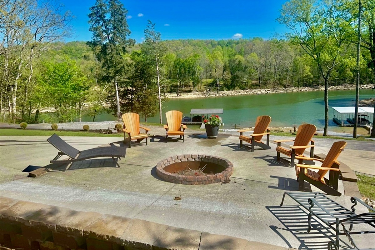 • Huge outdoor firepit that blends into a bar area with firewood waiting for you.